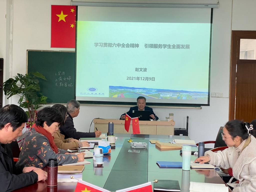 12月9日上午,体育教研部直属党支部学习党的十九届六中全会精神。校党委副书记赵文波领学并主持会议,全体教职工参加学习。