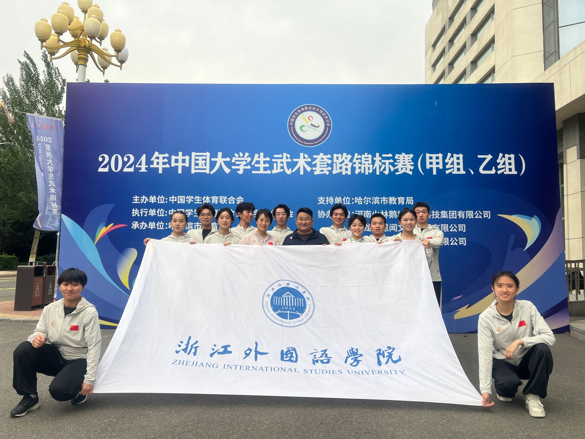 6月8日,2024年中国大学生武术套路锦标赛(甲组、乙组)在哈尔滨落下帷幕,本次比赛吸引了来自全国各地的256支队伍共1281名运动员参赛,是全国高校大学生级别最高、规模最大、影响力最广的武术赛事。浙外武术队在吴炜、李志良、崔文娟的带领下,经过5天的激烈角逐,最终获得获4金1铜的优异成绩,另外有7人次在第5名至第8名中获奖。实现单次比赛金牌数目历史突破。