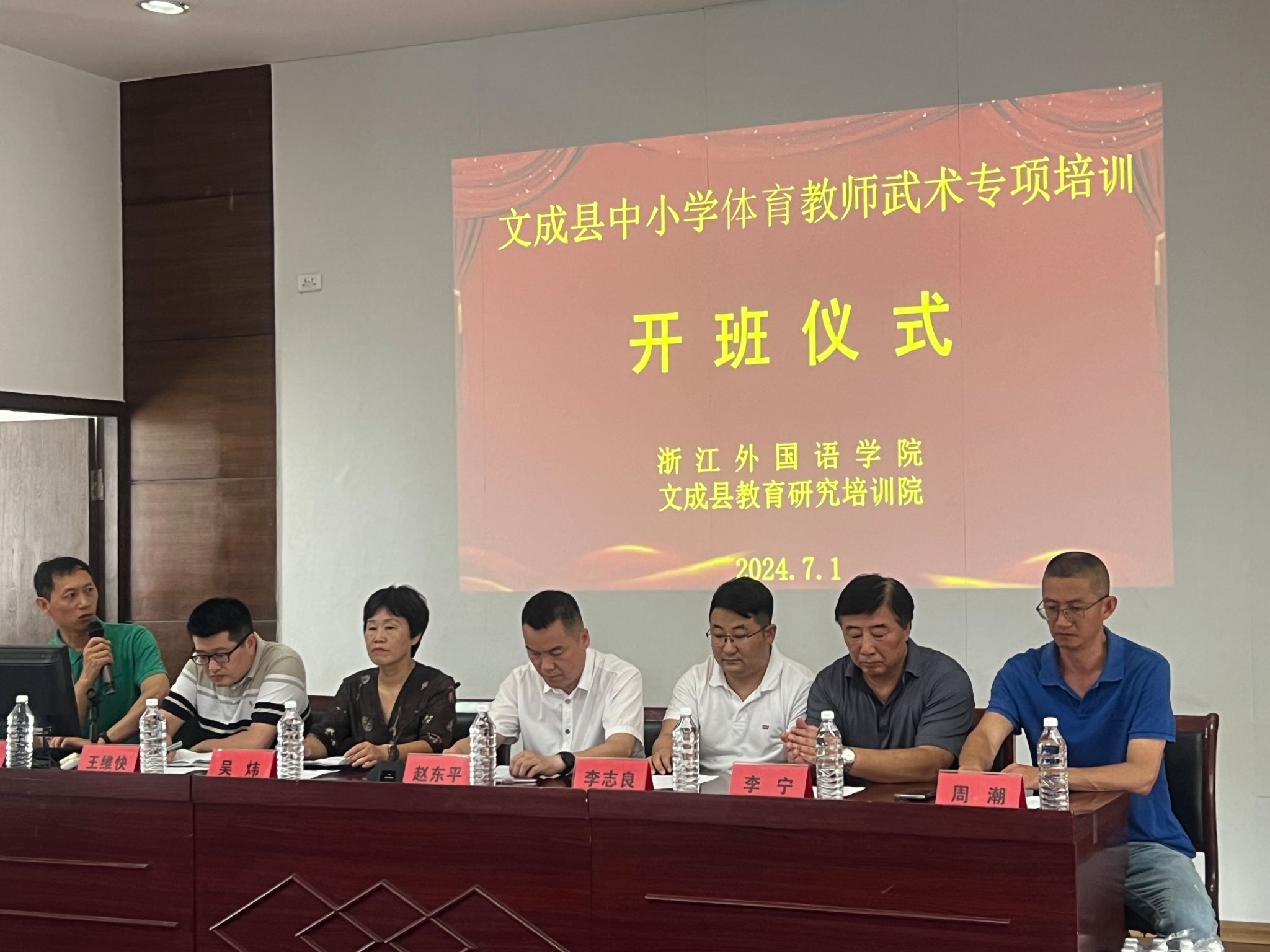 开班仪式上,文成县教育局局长赵东平介绍了文成县学校体育工作的开展情况及文成县中小学师资培训等相关情况。他强调了青少年体育教育的重要性,并希望通过此次培训,能够进一步推动文成县体育教育事业的发展。随后,浙江外国语学院体育教研部主任吴炜进行了开班动员,希望通过此次活动深化体教融合、引领学校体育改革创新、提升学生综合素质。她特别强调了武术学习、武德教育与学校体育的融合,希望武术能够扎根校园,让武魂根植学生内心。他还提到,此次培训将是一个重要的契机,旨在提升武术教师的执教能力和水平,同时传承好非遗文化,让民族传统体育在文成县的校园里生根发芽。