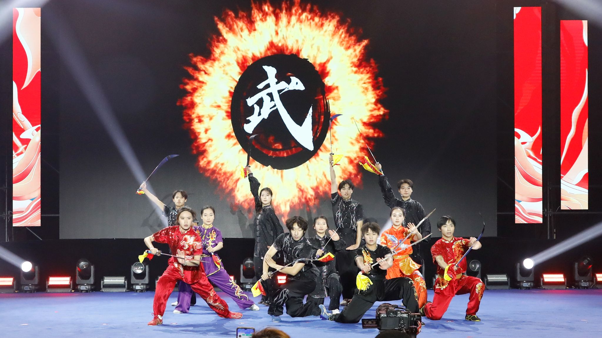 活动现场热度持续攀升。我校武术队带来了活力四溢的表演《中华力量》。他们刚劲有力的动作,配合默契的协作,将武术的力量感与节奏感展现得淋漓尽致。