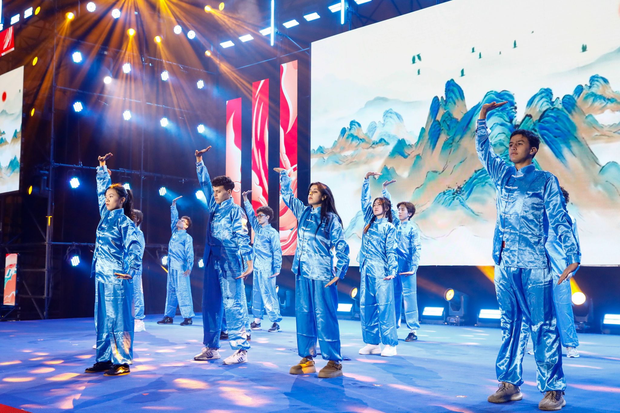 由我校留学生代表带来的八段锦互动表演将活动现场的氛围推向高潮,表演中,留学生们与台下观众共同习练八段锦,他们一招一式认真专注,展现出对中华传统文化的热爱与尊重,为开启健康生活年注入了活力。