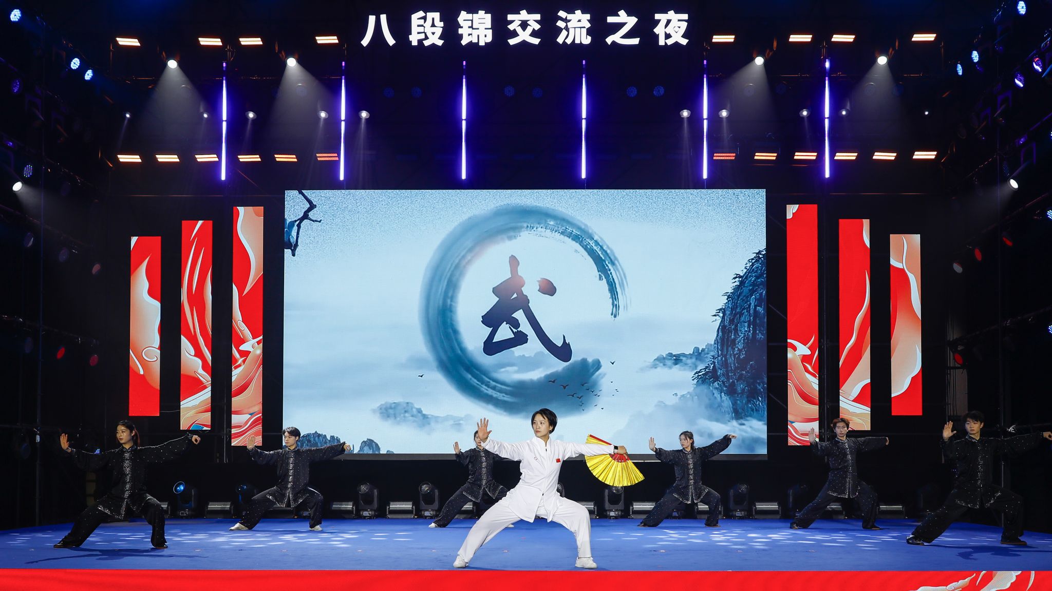 2008年北京奥运会女子太极拳、太极剑全能冠军崔文娟老师及其团队带来了太极拳表演《行云流水》,一招一式如笔走龙蛇,舒缓间尽显劲道,刚柔并济中尽显中华传统武术的博大精深。