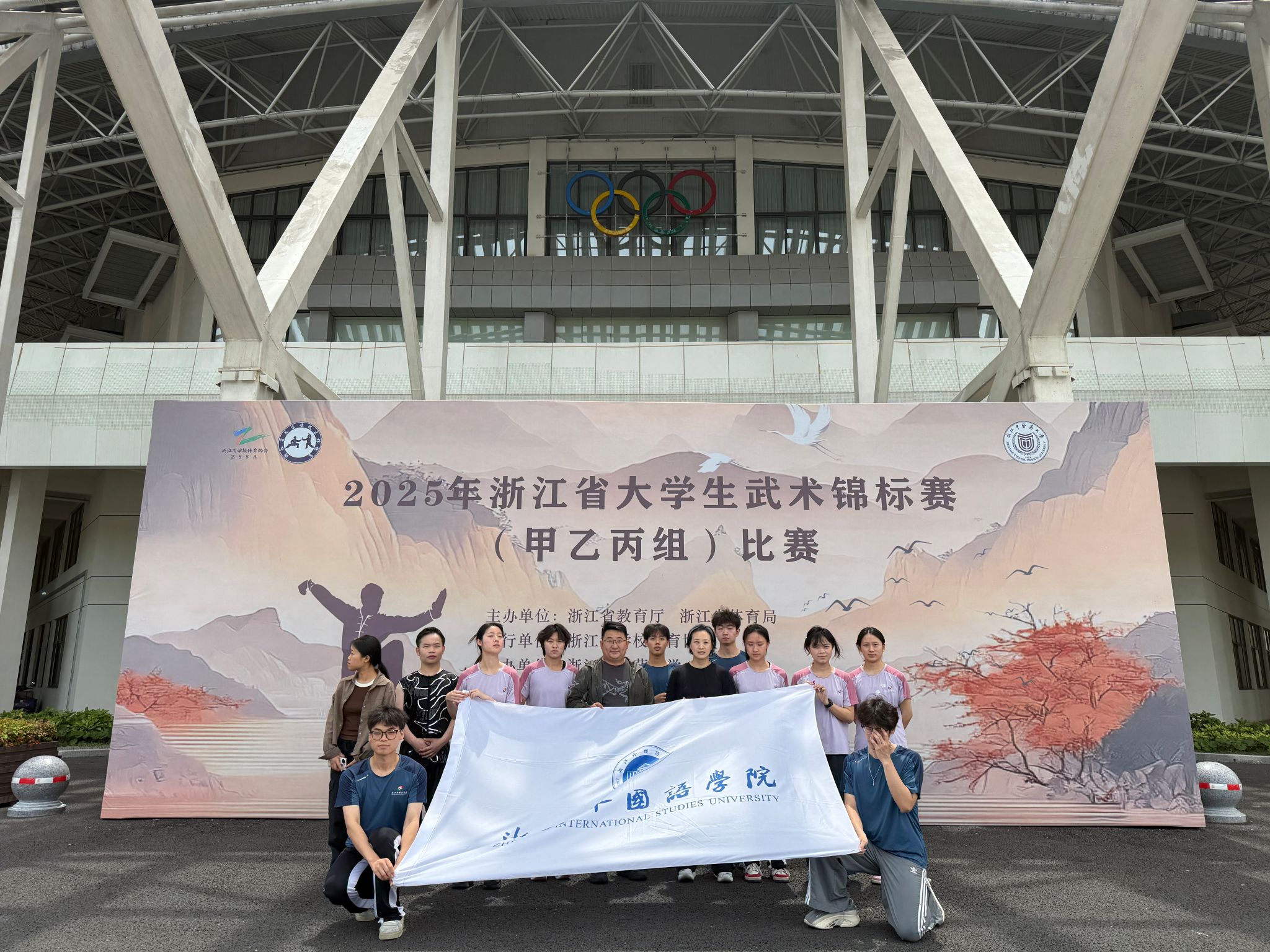 2025年5月15日至19日,浙江外国语学院武术队参加在嘉兴举办的浙江省大学生武术(甲组)锦标赛。在李志良、崔文娟两位老师的带领下,10名运动员参与多个项目角逐。