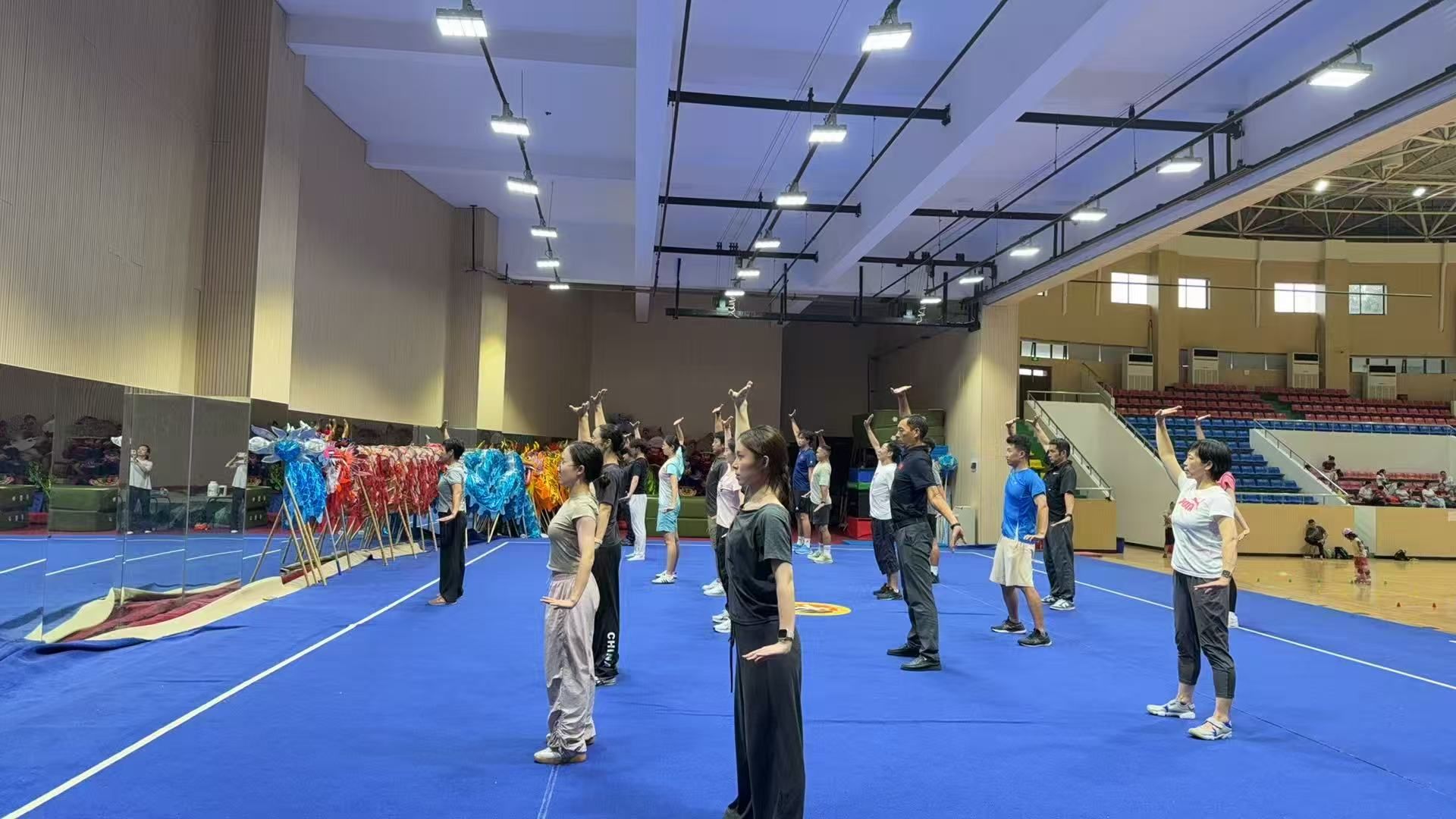 会后,为提升教师传统保健体育项目的教学能力,部门组织全体教师移至体育馆一楼,开展了八段锦集体演练与教学交流活动。活动中,教师们通过一招一式的沉浸式体验与互动研讨,进一步掌握了八段锦的动作要领与文化内涵,并就如何将其有效融入体育课堂、丰富教学内容进行了热烈讨论。