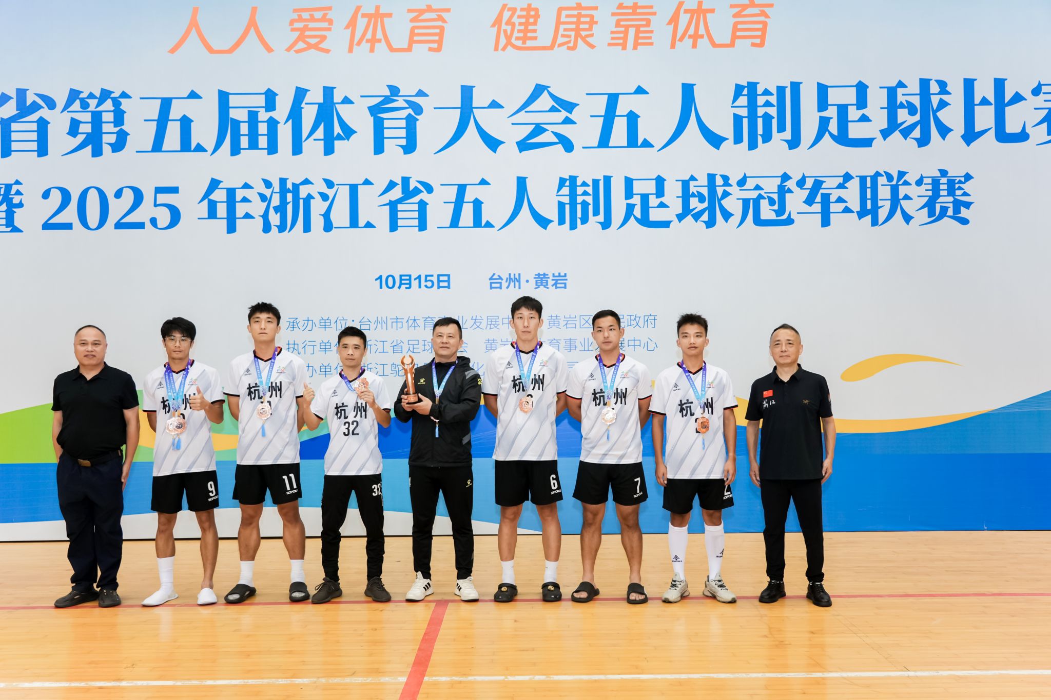 10月15日-19日,浙江省第五届体育大会五人制足球比赛在台州黄岩圆满收官。我校体育教研部郑少邦老师受邀加入杭州代表队,以专业运动员与体育教育工作者的双重身份征战赛场,最终与队友携手夺得比赛季军,为杭州争光的同时,彰显了我校体育师资的过硬实力。